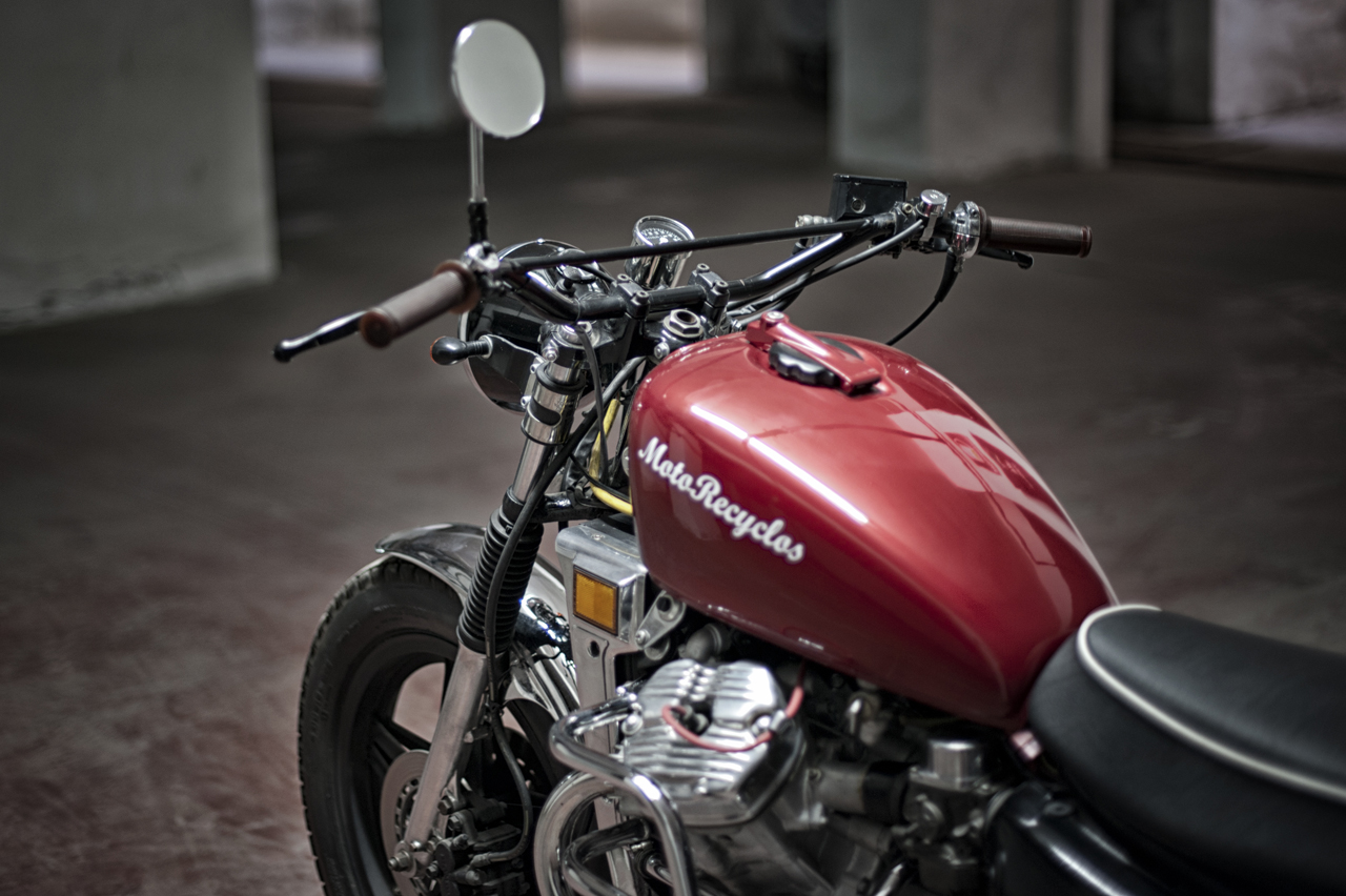 Nata quasi per gioco, è la Motorecyclos numero uno, omaggio alle classiche bicilindriche inglesi da gita fuori porta. Una delle prime trasformazioni su base Honda CX 500 – C, cambiandone prima l’assetto di guida e poi la personalità. Ricca nelle dotazioni di omaggi alla vecchia Inghilterra.